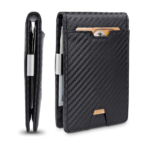 Bifold MEN Wallet Custom Design Minimalist Slim Card Holder Mental Carbon Fiber Leather RFID Blocking Money Clips